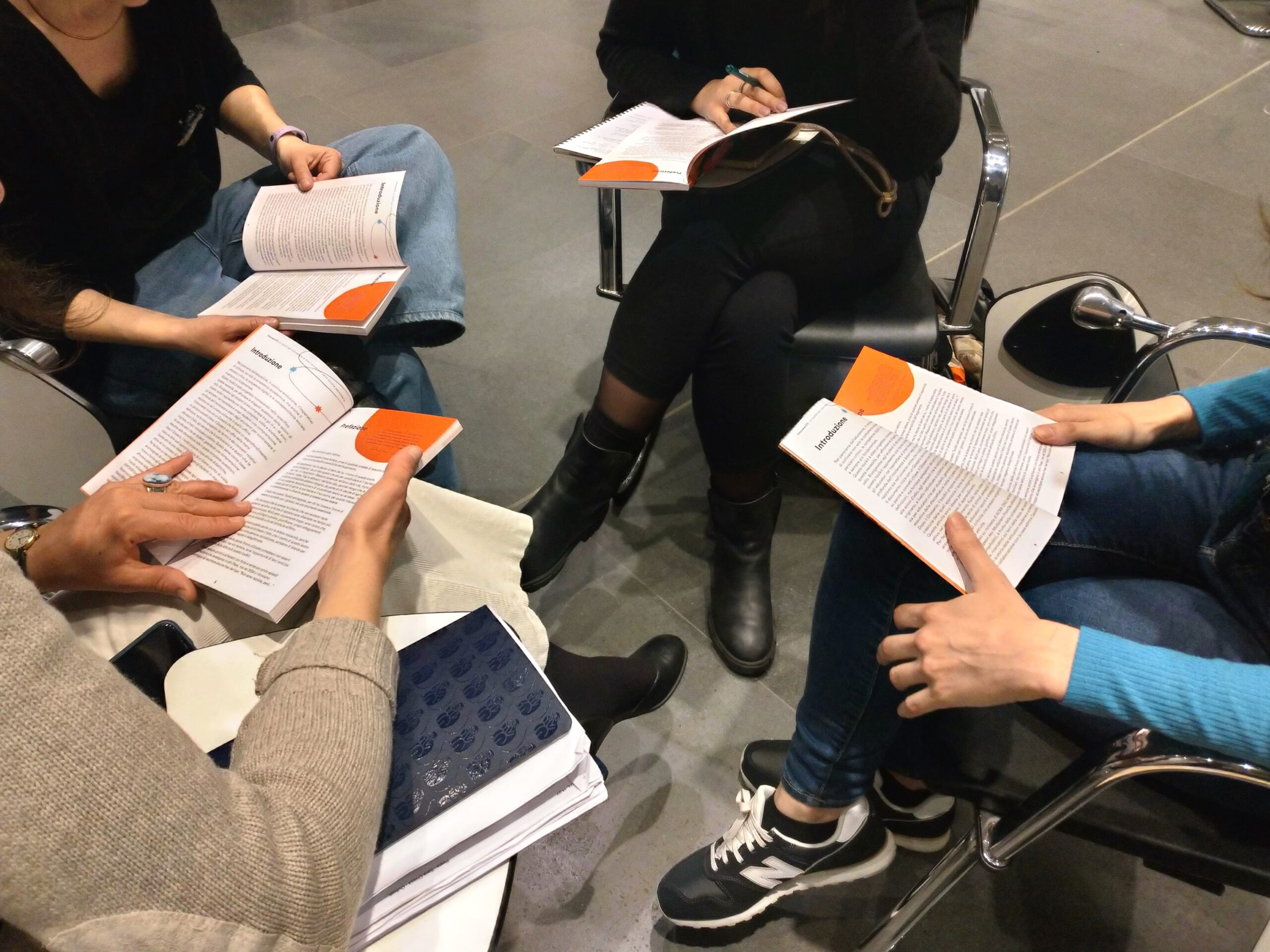 Sotto la guida di Marie, il cerchio iniziale si è tramutato in piccoli gruppi di lavoro che dapprima hanno condiviso la lettura della prefazione di Sahra Sparavigna, poi hanno ragionato assieme attorno ai concetti esplorati e approfonditi nel Glossario, la prima parte del toolkit. Parole – più e meno conosciute dalle persone presenti – da cui sono scaturite interessantissime domande e riflessioni, capaci di aprire a un nuovo dialogo, anche in questo caso trasformativo.